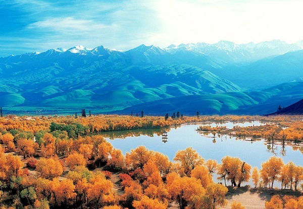 新疆地形复杂多样,包括高山、盆地、沙漠和绿洲等,著名的天山山脉横贯中部,将新疆分为南疆和北疆两部分,北部有阿尔泰山脉,南部有喀喇昆仑山脉和喜马拉雅山脉,新疆的沙漠主要有塔克拉玛干沙漠和古尔班通古特沙漠,新疆还有许多美丽的湖泊,如天池、赛里木湖等。